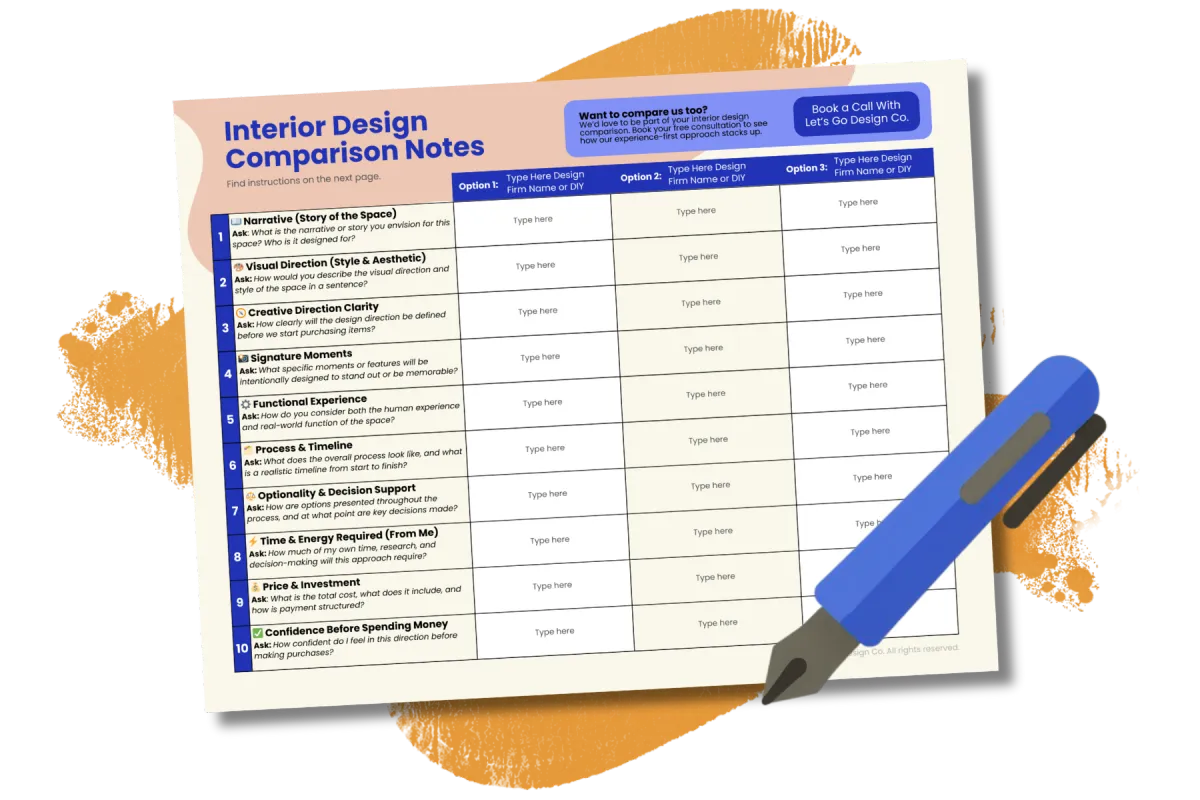 It helps you evaluate your design options—including DIY—side by side, using the questions that actually matter, so you can move forward with clarity and confidence.